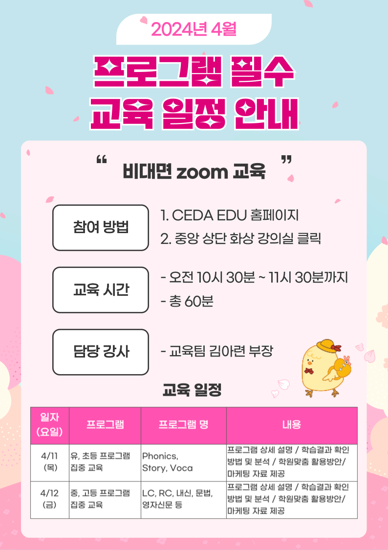 2024년 4월 비대면 프로그램 필수교육 일정 안내