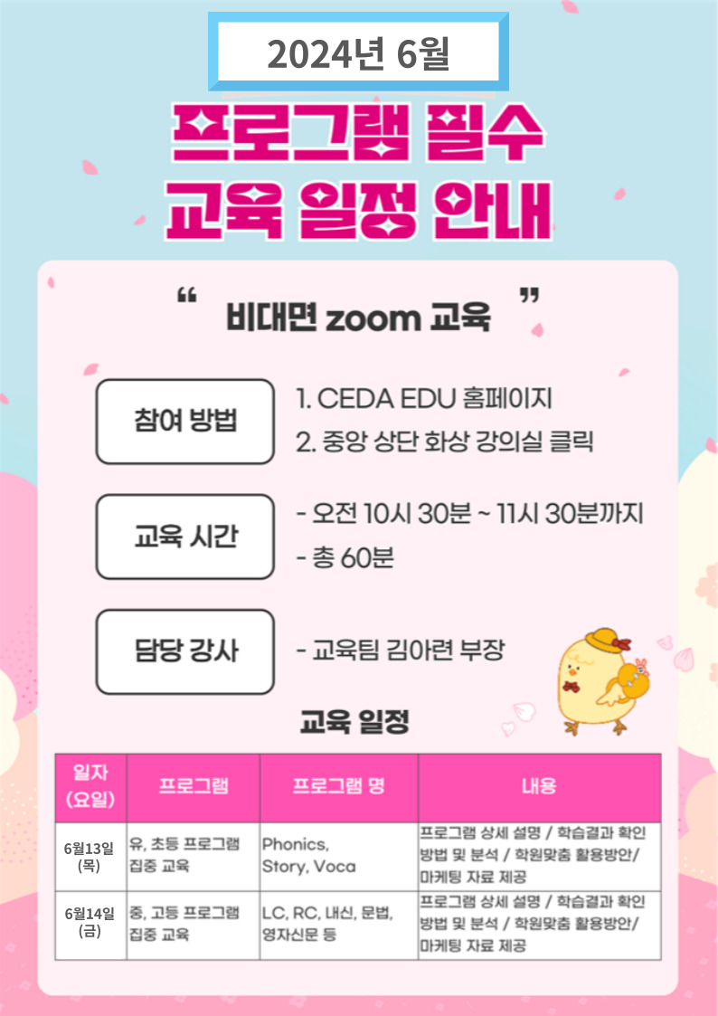 2024년 6월 프로그램 필수 교육 일정 안내